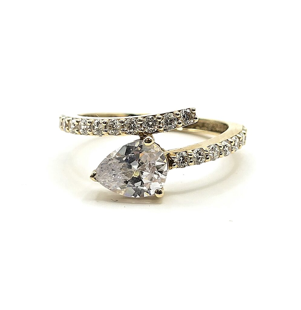 טבעת זהב טיפה משובצת זרקונים 14 קראט קולקציה חדשה