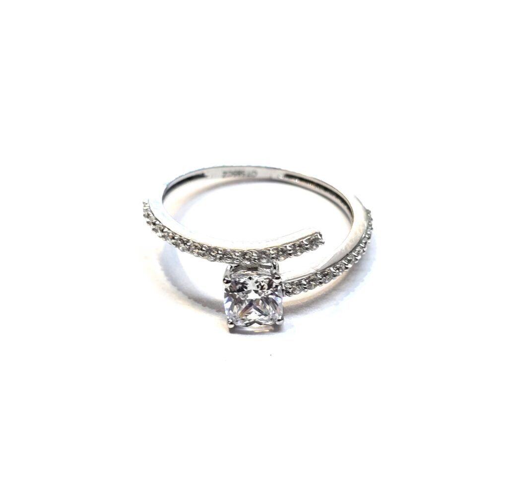 טבעת זהב לבן 14 קראט משובצת זרקונים קולקציה חדשה grnd7