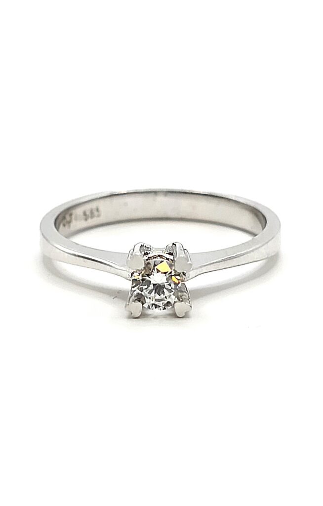 טבעת זהב לבן 14 קראט סוליטר קלאסי קולקציה חדשה gr25